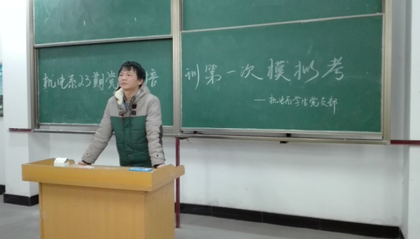 本网讯(通讯员 曹珊珊)11月29日晚上18点30分,由机电系学生党支部主办的第23期党校学习小组党章学习模拟考试在知新楼408顺利举行。本次考试由机电学生党支部指导老师石晶晶老师及学生党支部全体干事组织筹办,第23期机电系党校学习全体人员参加了本次考试。