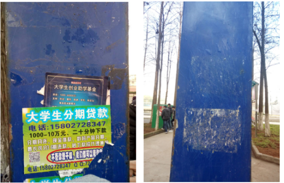 以后也没有到处乱扔垃圾了。后来的几次劳动课,我们都取得了比较好的效果,这是和学员们的努力,还有同学们的支持分不开的。最后一次劳动课,我们系负责校内公共区域小广告以及垃圾清理工作,在清理过程中,我们按照已有分组进行组合,分为两大组主要针对小广告清理和垃圾清理两个部分,经过同学们齐心协力,共同合作,顺利的完成了本次任务。