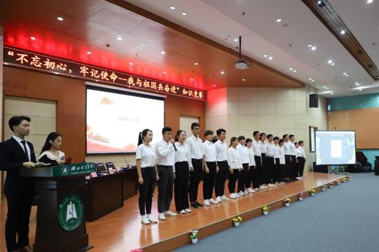 10月22日晚6时30分,为贯彻党中央关于“不忘初心,牢记使命”主题教育的要求,推动学生党员深入学习十九大报告和习近平新时代中国特色社会主义思想,由太阳集团官网8722学生党支部和艺术与设计学院学生党支部联合举办的“不忘初心,牢记使命——我与祖国共奋进”知识竞赛在学术报告中心弘德厅隆重举行。校党委彭德忠书记和部分学校教职工出席本次活动。