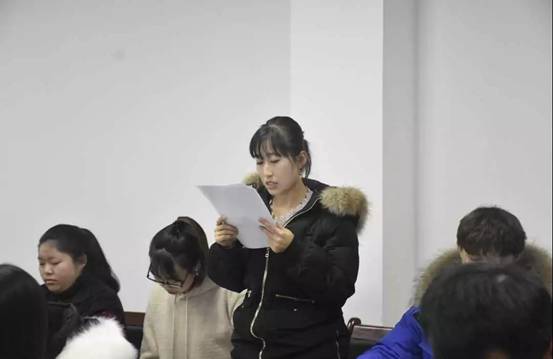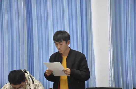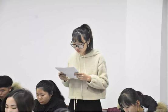 由学生党支部指导老师石晶晶同志主持2019年下半年预备党员接收大会,大会第一项介绍大会流程。