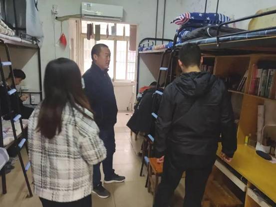 教师和学生干事分组对机械学院学生内苑八号楼、内苑十一号楼、学生北苑一号楼、北苑二号楼所在寝室进行卫生安全和防疫管控情况检查,在检查过程中,老师们再次强调学校防疫制度,提醒同学们要注意继续做好防疫工作,要特别注重个人卫生问题:戴口罩,勤洗手,勤洗澡,勤更衣,勤洗衣,寝室常通风,不堆积垃圾,不吃生冷食物,常晾晒衣物床被子等,继续做好防疫常态化管理,出入校门打卡,早中晚健康上报,非必要不出校门,不随意离校、离汉等。在走访过程中,老师们还细心提醒同学们周末要大幅度降温,同学们要注意添加衣服,注意保暖,谨防感冒。