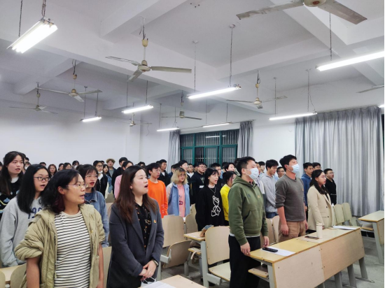开班仪式第一项,全体起立奏唱国歌,随后机械学院本期学员代表、艺术学院学生党员代表依次上台发言,分别表达了对本期党校培训班召开的祝贺,感谢组织提供这个学习和交流的平台,以及对接下来学习学有所获的期翼。艺术学院党总支副书记陈志昂着重强调了党课纪律,要求学员们严肃认真对待每次党课学习以及后续安排的线上学习及线下活动。
