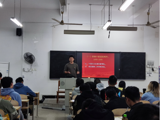 由机械学院学生党支部书记王松老师给学员们带来主题为“将改革进行到底”的首场党课,王老师以“四史”教育为授课内容,重点讲授了改革开放史。由两个问题引入:改革开放伟大事业是如何艰难起步的?改革开放伟大事业是如何实现世纪跨越的?改革开放是党带领人民进行的新的伟大革命,是中国共产党推进社会主义制度自我完善和发展的实践史。