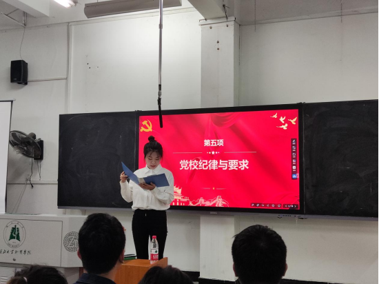 第四项:艺术学院李荣燕同志着重强调了党课纪律,要求学员们严肃认真对待每次党课学习以及后续安排的线上学习及线下活动。