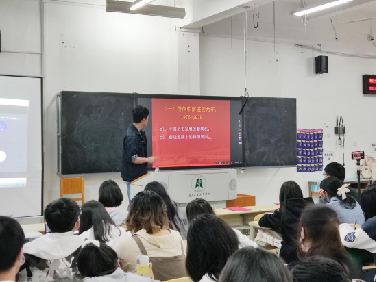 改革开放期间,我们涉过无数险滩、啃下无数硬骨头,这其中无不闪现着“敢想、敢做、敢为天下先”的改革创新精神和特殊时代意义。王松同志借此授课机会,向同学们讲到了以下几点:一、改革开放的业绩与成就;二、改革开放成功的原因分析;三、改革开放的未来思考。从“醒过来”“站起来”“强起来”“富起来”四个时间段简单回顾了中国近现代史改革发展历程。