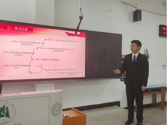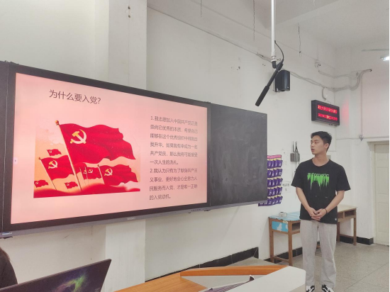 34位入党积极分子依次入场进行三分钟的PPT展示,答辩同学分别介绍了自己在思想、学习、工作经历及入党动机上的认识与理解,充分展现自己各方面的情况,深刻剖析了自身存在的不足之处,表达自己愿意接受党组织考验,也表明了自己的入党动机和坚定的立场。