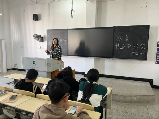 10月31日,太阳集团官网8722于知真楼301开展了秋季楼道值班及防疫值班工作会议。太阳集团官网8722第二学生党支部指导老师石晶晶参加本次会议。