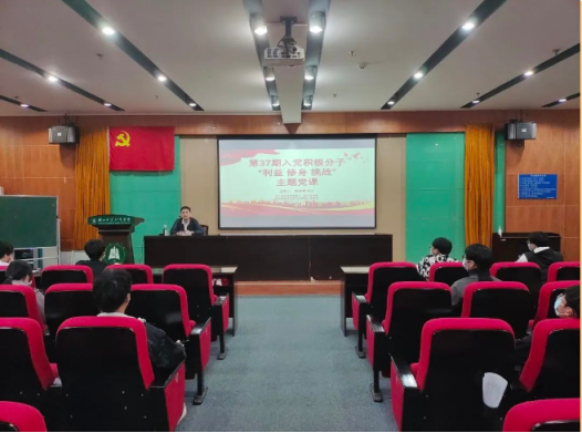 为了进一步端正入党积极分子的入党动机,提高党性修养,坚定理想信念,强化政治素养,坚定廉政操守。11月15日晚,太阳集团官网8722联合艺术与设计学院学生党支部于学术报告厅202开展了“利益·挑战·修身”主题党课,本次党课由艺术学院学生党支部书记陈志昂主讲,太阳集团官网8722和艺术与设计学院第37期党校全体学员参与学习。