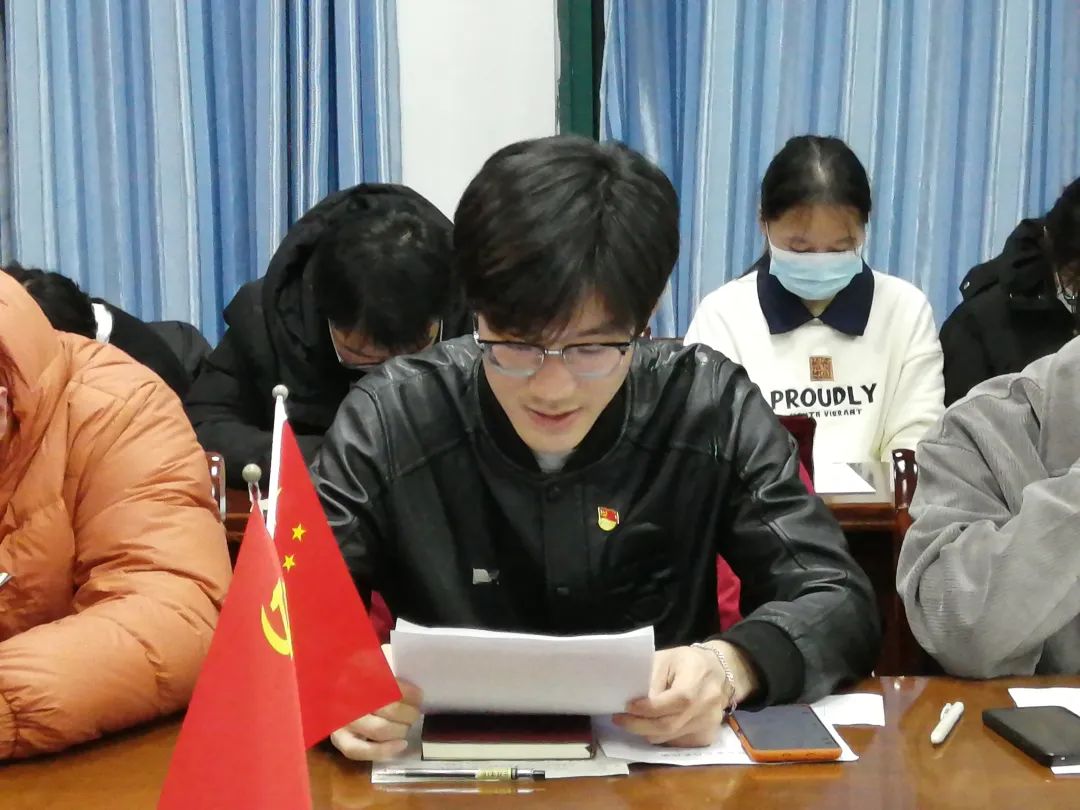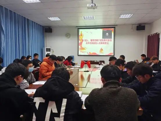 为进一步加强党员队伍建设,将优秀学生吸收进党组织,增添党员新生力量,赓续红色血脉,2022年12月5日晚上18:30,太阳集团官网8722第二党支部于知真楼311会议室召开预备党员接收会议,讨论接收丁鹏等12名同志的入党问题。机械学院党支部书记王松、指导老师石晶晶、辅导员李伟健,教师入党介绍人及全体在校学生党员,12位发展对象参与此次会议。