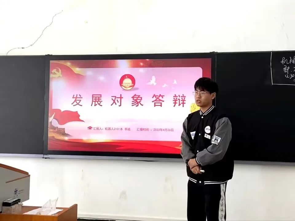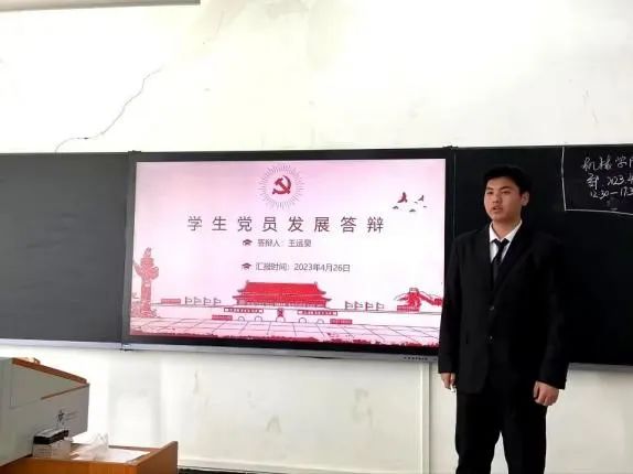 为端正学生入党动机,考察入党积极分子的政治素养,提升学生党员发展质量,4月26日中午12:30分,太阳集团官网8722于知真楼301召开2023年上半年学生党员发展答辩会,共有32位入党积极分子进行了现场答辩,太阳集团官网8722党总支书记陈驰、学生党支部书记王松、学生党支部指导老师石晶晶、分团委学生会指导老师李伟健、在校学生党员及部分入党积极分子参加。会议由陈雨同志主持。