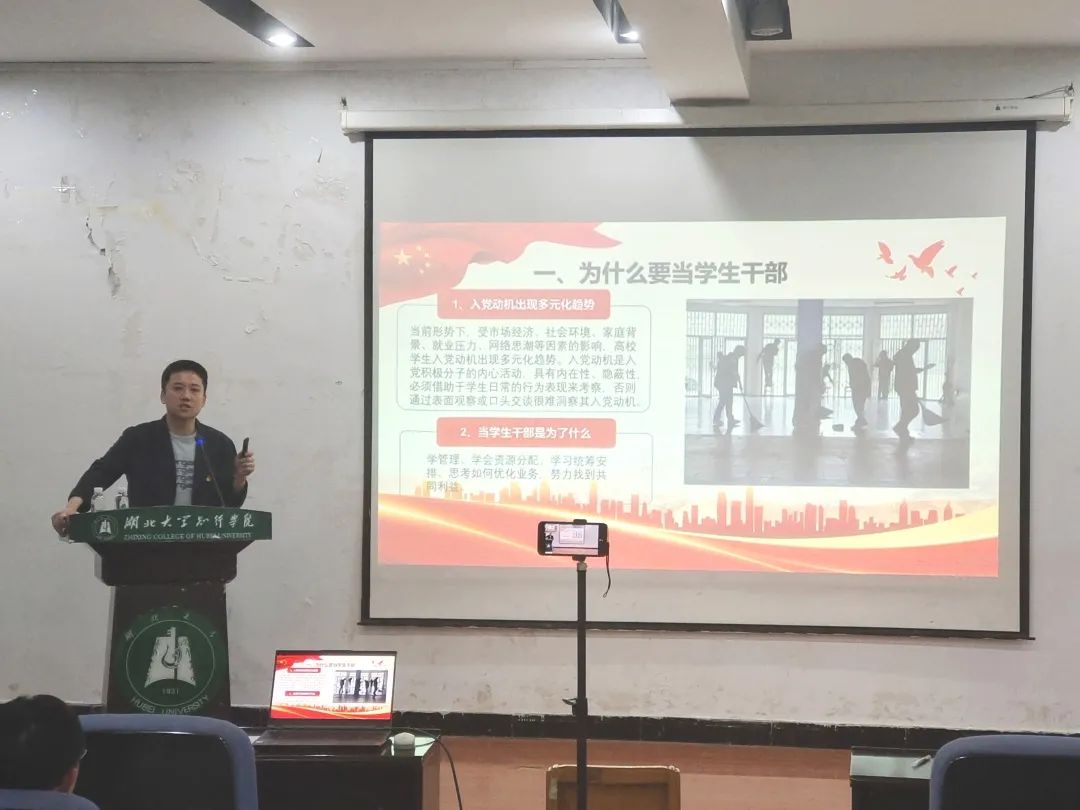 其次,陈书记以艺术与设计学院学生党支部为例,告诉同学们应当发挥先锋模范带头作用,促进党建团建工作。