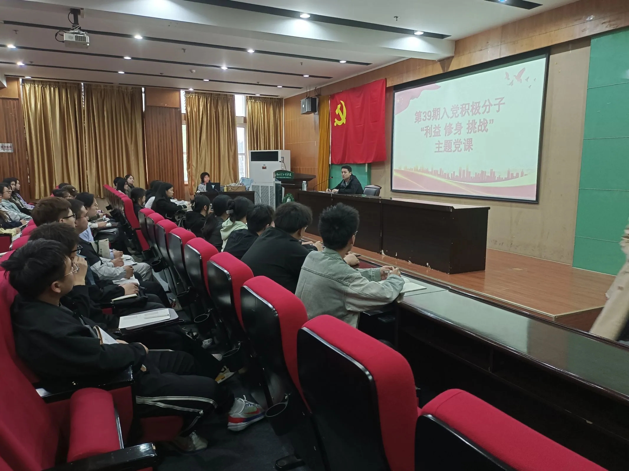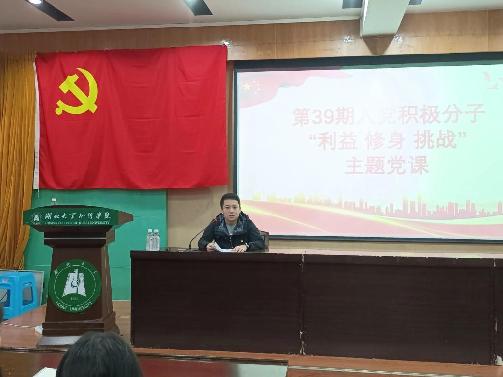 11月9日下午16:00,太阳集团官网8722联合艺术与设计学院于学术报告厅202开展以“利益·挑战·修身”为主题的专题党课,由艺术与设计学院党总支副书记陈志昂主讲,太阳集团官网8722和艺术与设计学院第39期党校全体学员参与学习。
