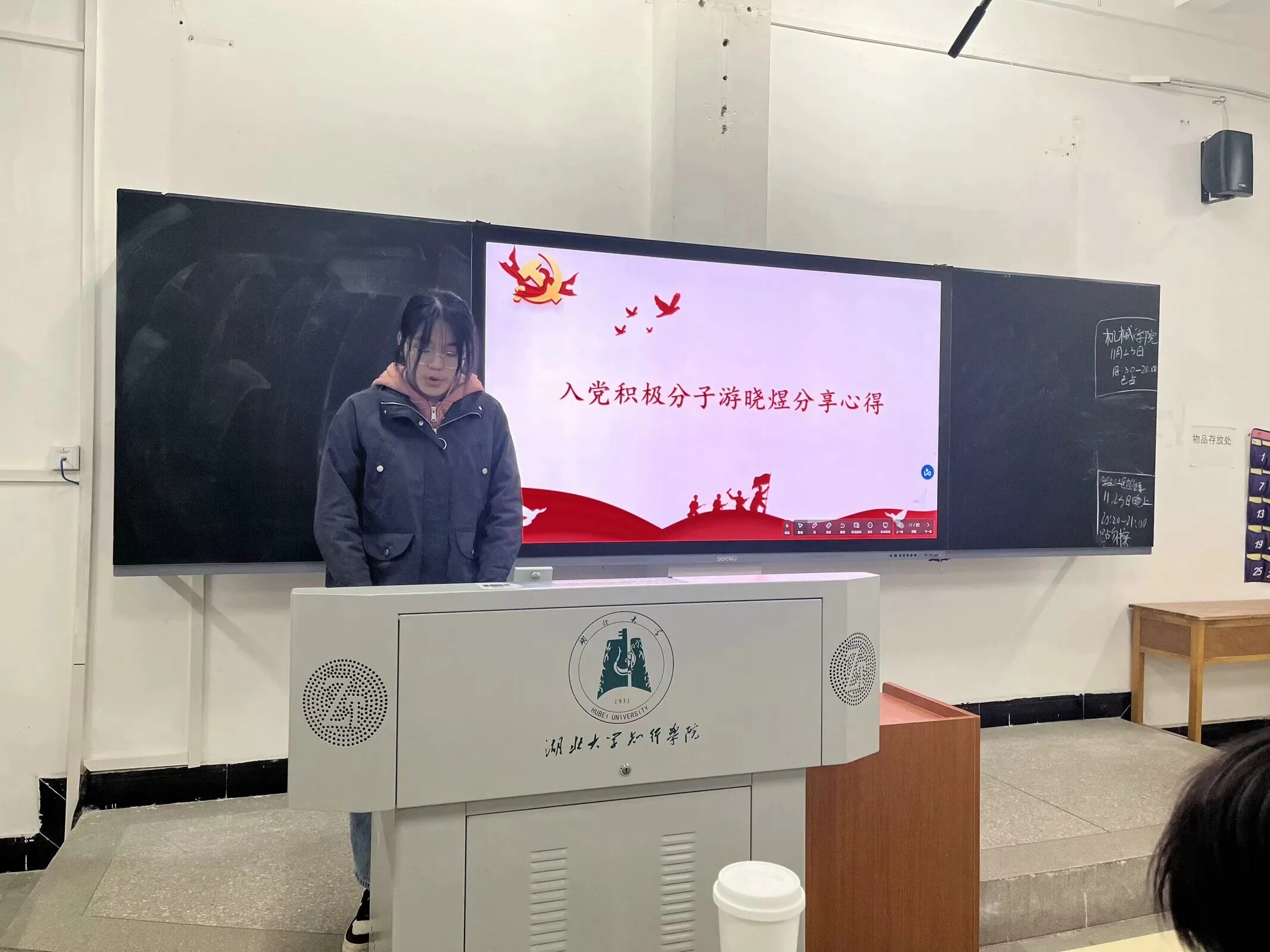 入党积极分子游晓煜分享心得,通过学习了解“一带一路”她深刻认识到了“一带一路”倡议的重要性及其全球影响,同时也看到了一个为人类谋进步、为世界谋大同的党,进一步明白了党的责任使命与理想担当。