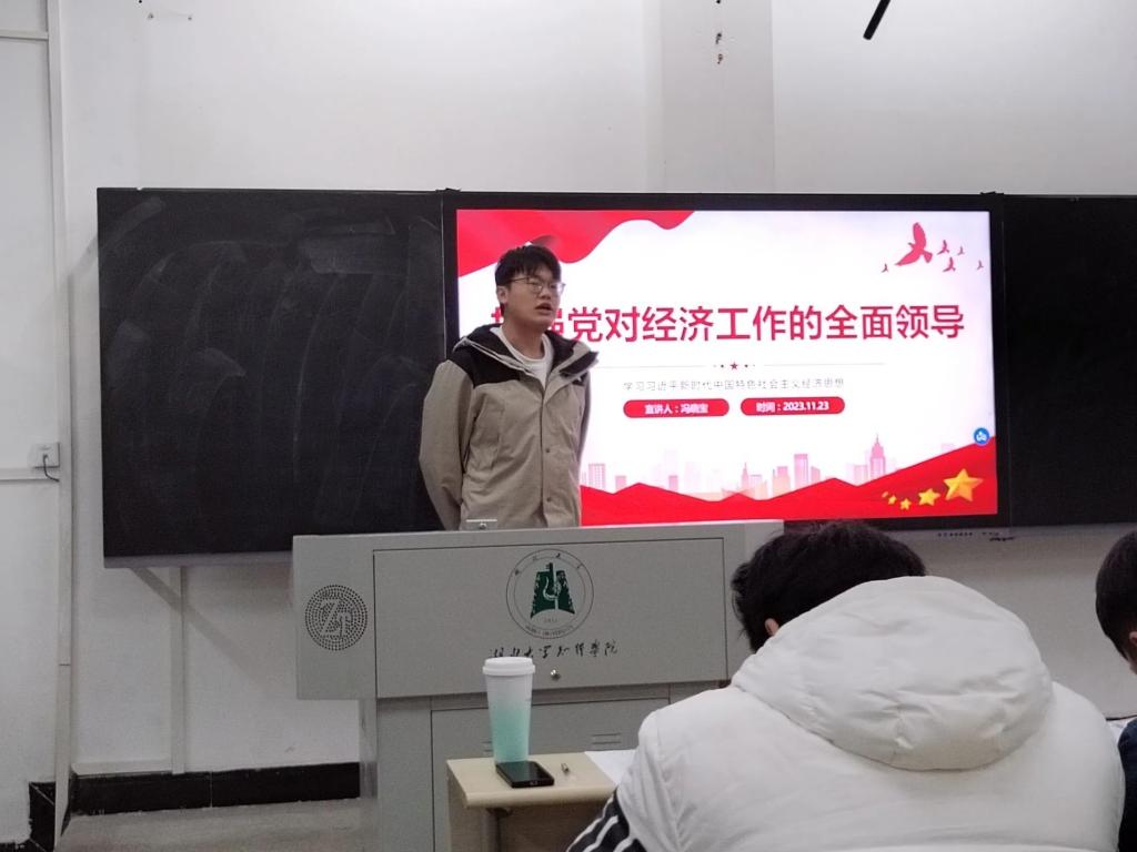 23级团支书代表严涵分享心得,他在“一带一路”学习中深刻认识到,“一带一路”不仅仅是一项经济合作计划,更是中国推动全球化、促进世界和平与繁荣的重要举措。希望青年积极响应一带一路倡议,为推动一带一路建设贡献自己的力量。