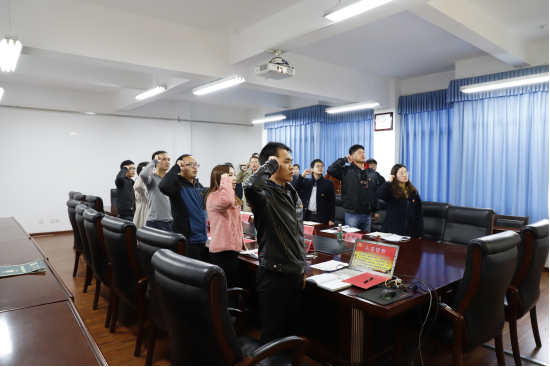 会议第二项,由马志德同志带领全体党员面向党旗重温入党誓词。
