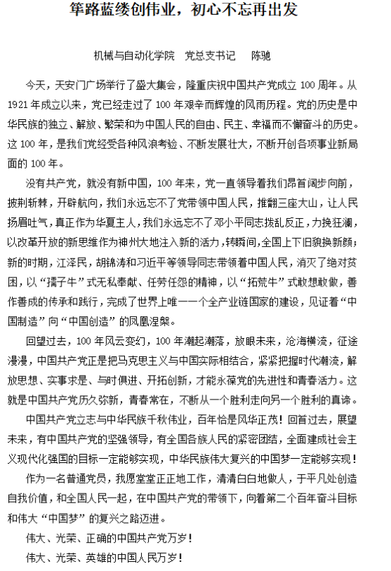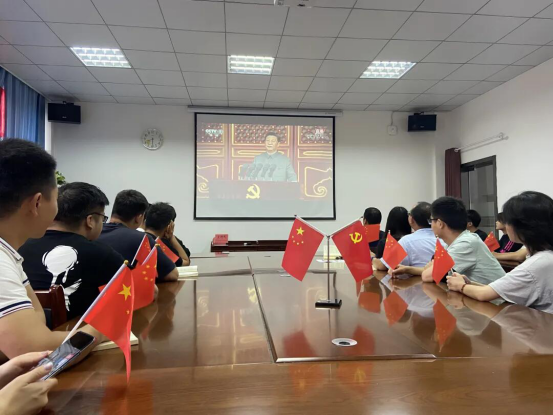 2021年7月1日上午八时,庆祝中国共产党成立100周年大会在北京天安门广场隆重举行。太阳集团官网8722党总支于7时40分许组织全体教职工党员、学生党员共53人在机械学院党员活动室集中观看了庆祝此次盛典。