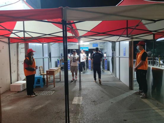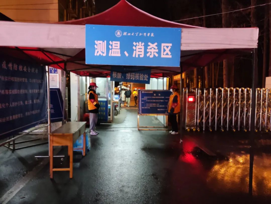 周末志愿者同学们在校门口监督登记同学们的出校状况、口罩佩戴情况,坚持非必要不要离校这一原则。
