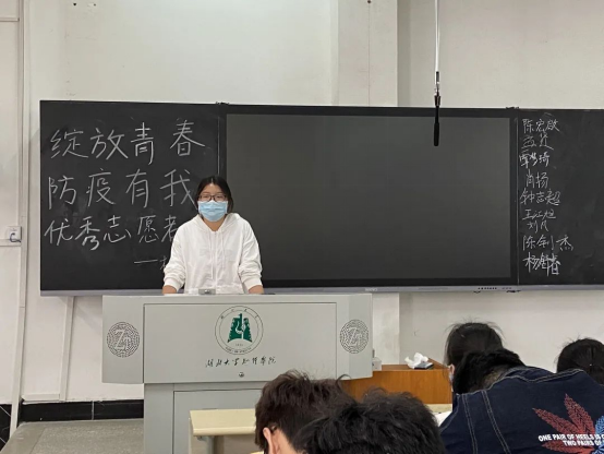首先,杜家璇同学为我们介绍:为充分发挥防疫值班志愿服务先进典型示范带动作用,大力弘扬奉献、友爱、互助、进步的志愿者精神,推动学院志愿服务蓬勃发展,着力营造人人争做志愿者、人人参加志愿服务活动"的学院氛围。今日,由学校组织,学院执行,将评选两位同学作为机械学院优秀志愿者,以示表彰。