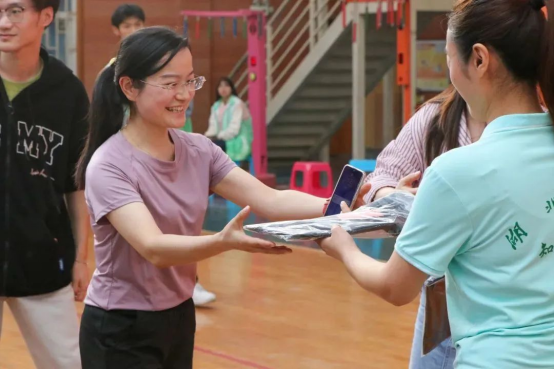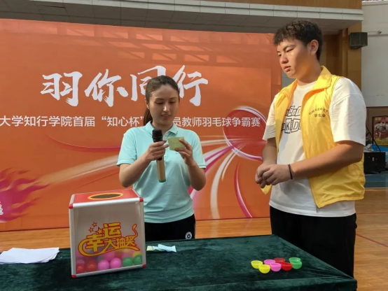 休息环节我们设置了抽奖活动,其中一等奖是一副羽毛球拍、二等奖是一个单肩包、三等奖是一双运动袜以及纪念奖是每一位参赛者都可以获得的。