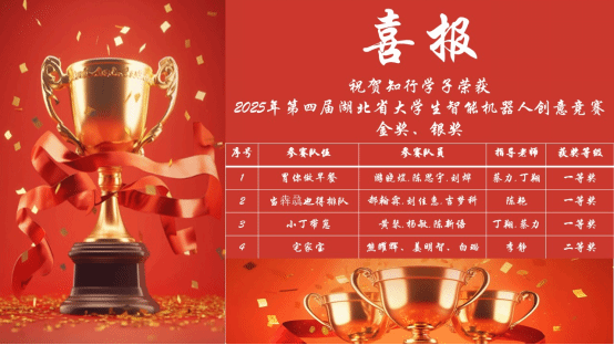 我院学子组成的4支参赛队共获得一等奖3项,二等奖1项的优异成绩,获得一等奖的3支队伍晋级全国总决赛,将代表湖北赛区踏上国赛征程。一群怀揣机器人梦想的有志青年,将借助这个国家机器人领域高素质人才的孵化平台,为我国机器人产业发展注入源源不断的新活力。