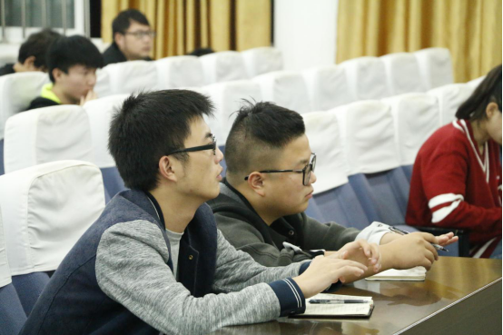 讲座中,王主任通过当前毕业形势、就业选择、就业准备以及未来发展四个方面对就业形势以及就业技巧进行讲解。作为理工男,面对竞争激烈的就业市场,如何在职场赢得自己的一席之地、如何制作适合自己的简历、在面试期间应注意到的哪些方面等一系列问题和同学们进行了探讨。