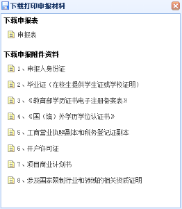 系统提供了打印项目申报材料功能,点击界面左侧的“打印项目申报材料”。