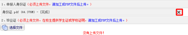 点击附件的中的 按钮,在弹出窗口中选择对应的附件材料,选择文件后系统会自动上传。如需修改,请点击文件右侧的删除图标删除原文件再上传新文件。