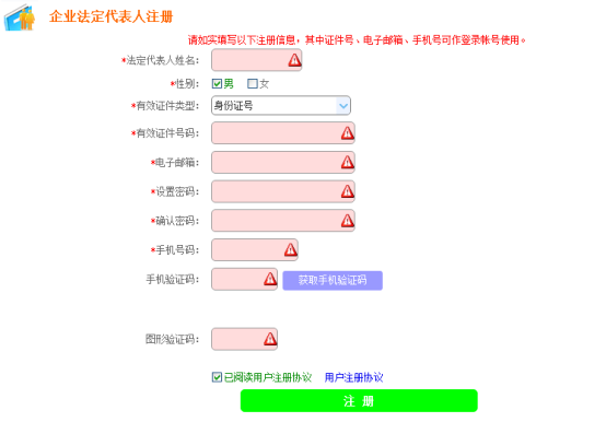 3. 每个证件号、手机号、电子邮箱号只能注册一次。