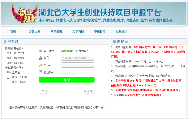 湖北省大学生创业扶持项目申报平台操作手册