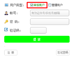 注册成功后返回登录页面,选择申报用户输入帐号密码登录。