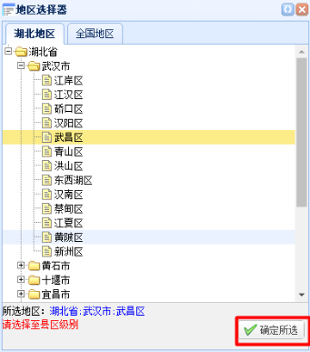 籍贯、户籍地址等地区填写一律使用系统提供的地区选择填写。在地区列表中选择地区后点击确定所选完成地区选择。
