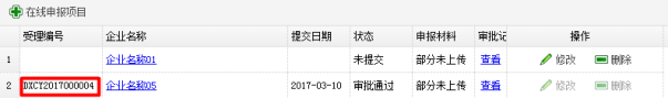 项目提交成功后,系统会为项目生成“受理编号”以示项目申报成功,同时项目信息能修改。