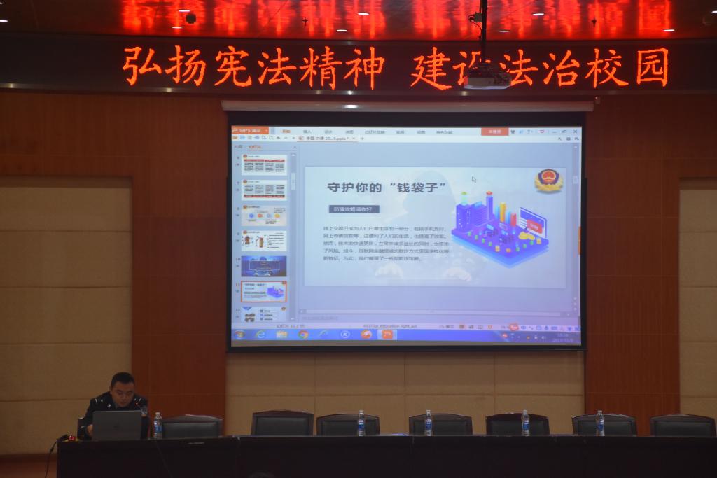 11月5日晚6点30分,武汉市江岸区谌家矶派出所警官在我校学术报告厅201开展了针对机械学院2019级新生以“高校安全教育”为主题的讲座。对于初次踏入大学的新生而言,校园的开放式环境是陌生的,因此,督促新生提升警惕意识和掌握基本的防护技能尤为重要。