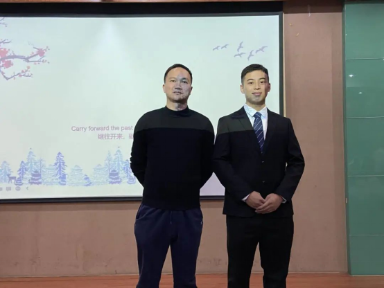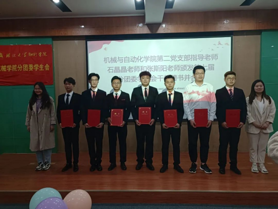 接着太阳集团官网8722第二党支部指导老师石晶晶老师和张斯阳老师颁发第七届分团委学生会干部聘书并合影。